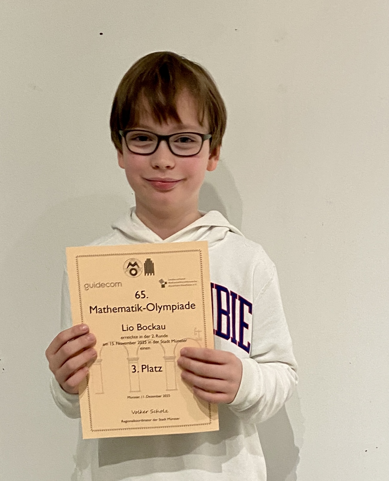 Mit einem ausgezeichneten dritten Platz konnte Lio Bockau aus der 5d einen bedeutenden Wettbewerbserfolg bei der diesjährigen Mathematik-Olympiade für die GeMM erzielen.