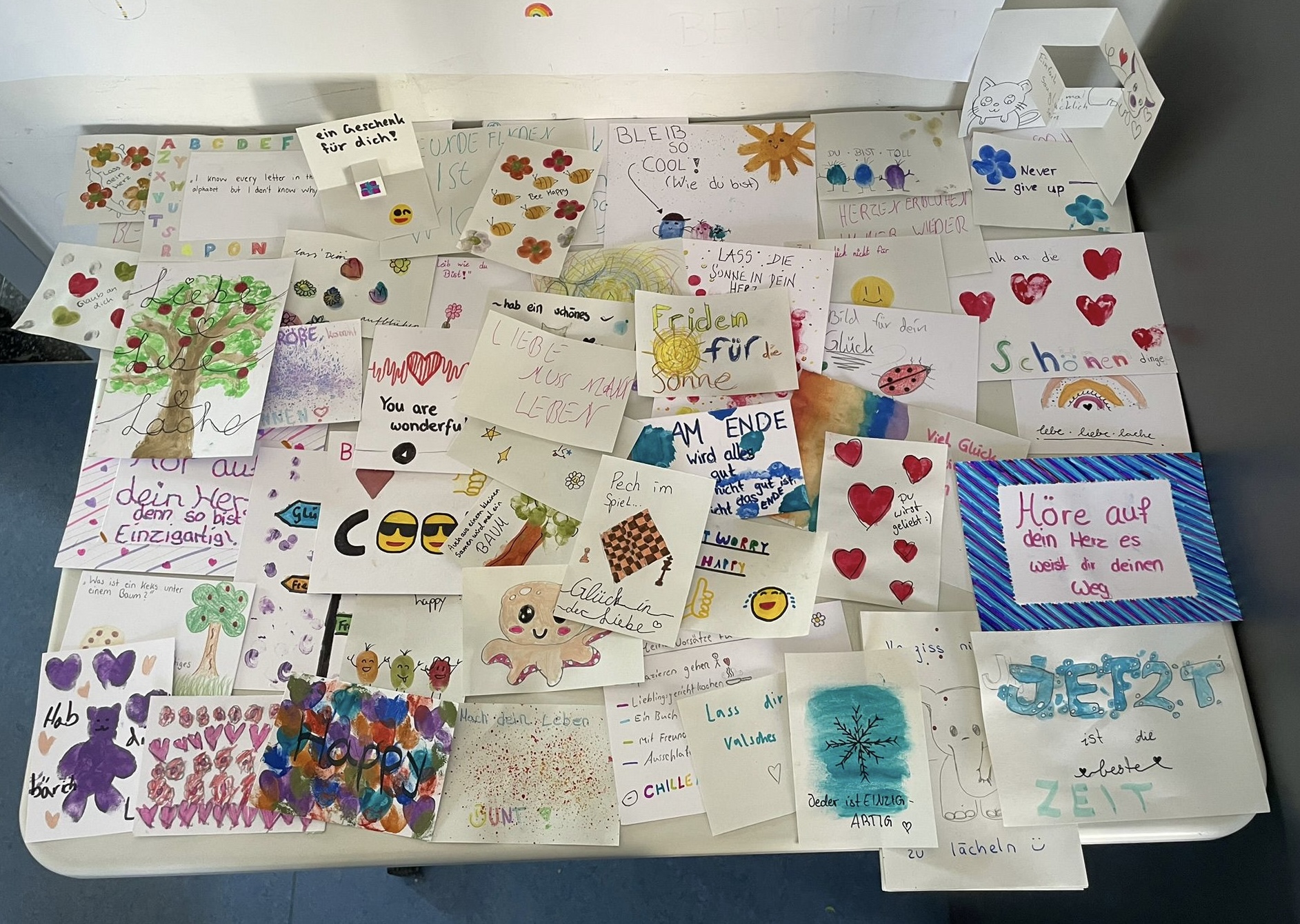 Den Grundstein für unsere Aktion haben wir gemeinsam mit Schülerinnen und Schülern der 6. und 7. Klassen gelegt. In einer kreativen Zusammenarbeit sind zahlreiche bunte Bilder mit hoffnungsvollen und positiven Botschaften entstanden. Diese zwischenstufentliche Aktion hat nicht nur viel Spaß gemacht, sondern auch gezeigt, wie viel Kreativität in unserer Schulgemeinschaft steckt.